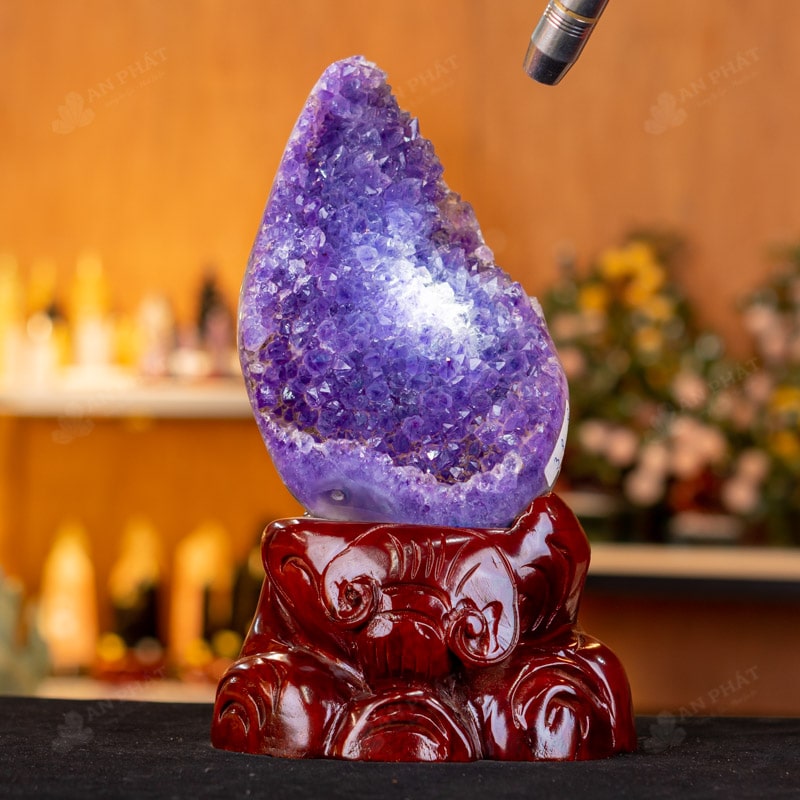 - Trọn bộ sản phẩm bao gồm: hốc thạch anh + 01 đế gỗ + hộp nhung sang trọng + túi giấy sang trọng + dầu dưỡng đá + thiệp + giấy kiểm định chất lượng đá