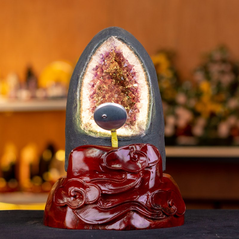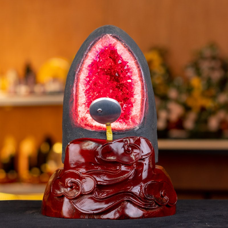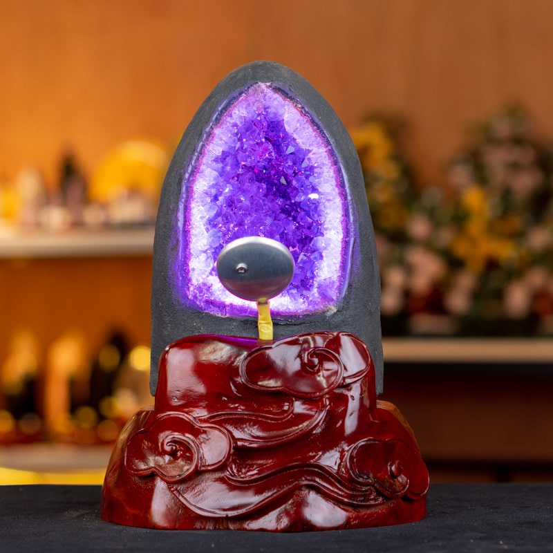 - Trọn bộ sản phẩm bao gồm: hốc thạch anh + 01 đế gỗ + đèn 7 màu + hộp nhung sang trọng + túi giấy sang trọng + dầu dưỡng đá + thiệp + giấy kiểm định chất lượng đá