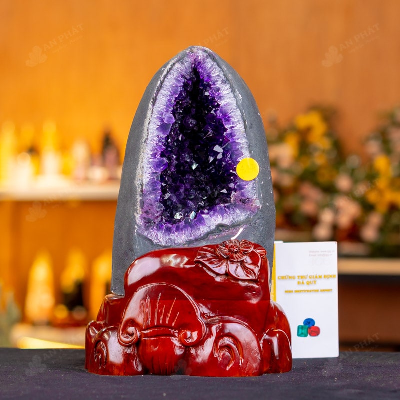 - Trọn bộ sản phẩm bao gồm: hốc thạch anh + 01 đế gỗ + đèn 7 màu + hộp nhung sang trọng + túi giấy sang trọng + dầu dưỡng đá + thiệp + giấy kiểm định chất lượng đá