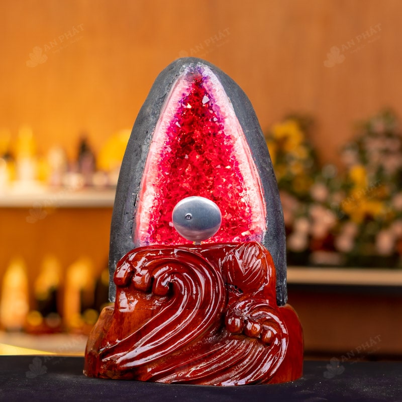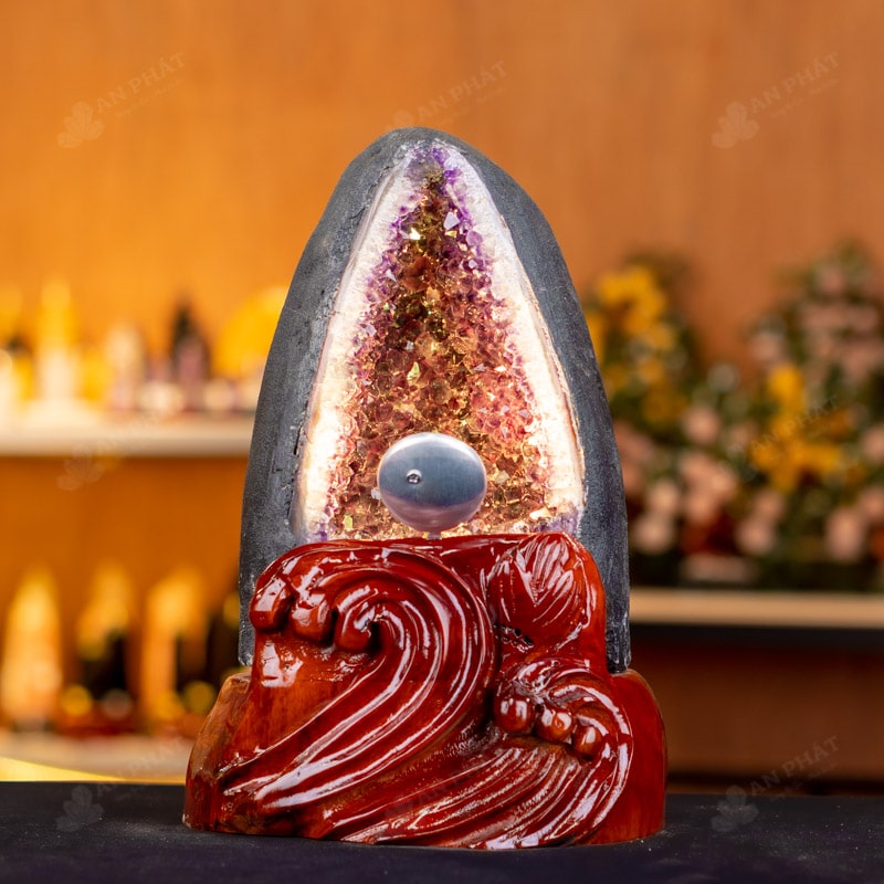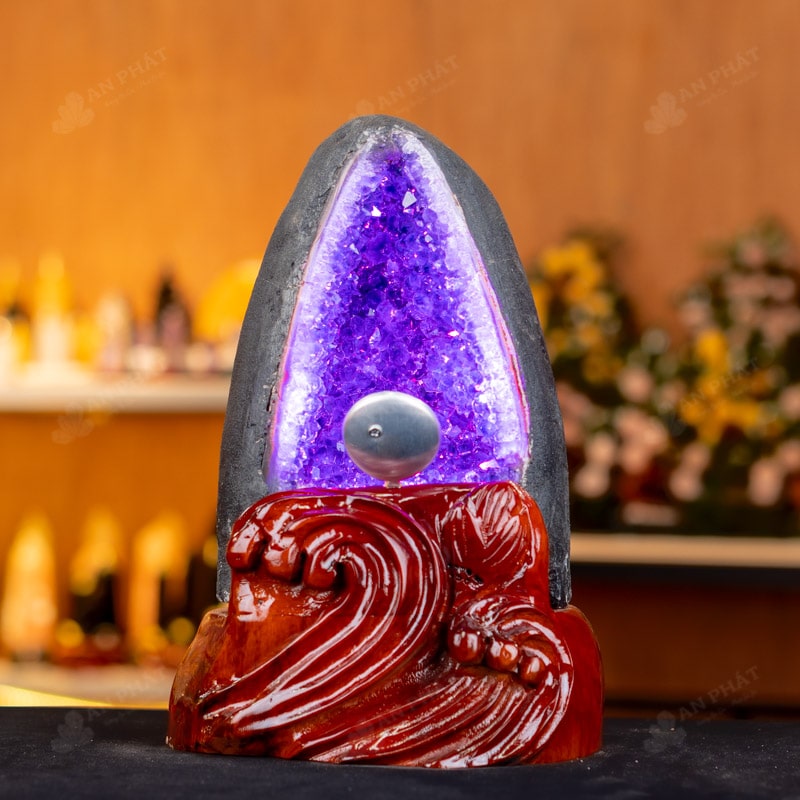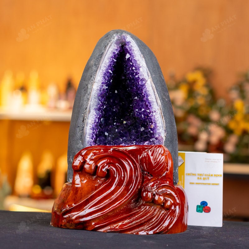 - Trọn bộ sản phẩm bao gồm: hốc thạch anh + 01 đế gỗ + đèn 7 màu + hộp nhung sang trọng + túi giấy sang trọng + dầu dưỡng đá + thiệp + giấy kiểm định chất lượng đá