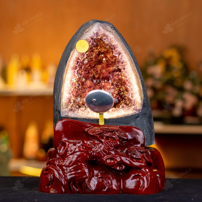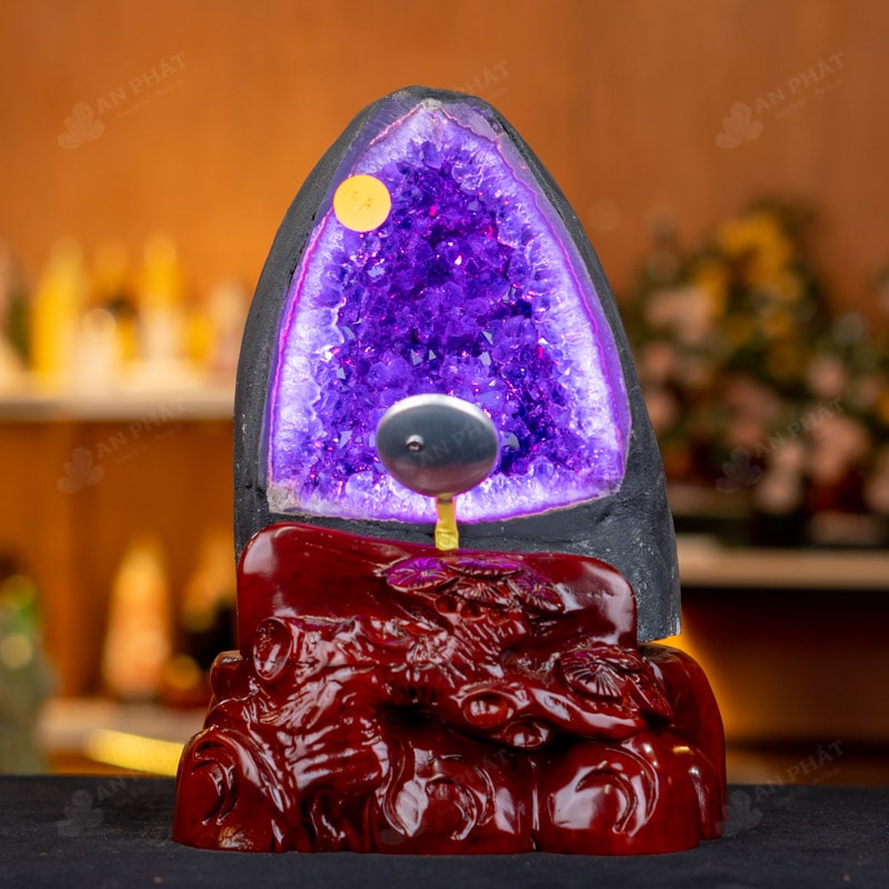 - Trọn bộ sản phẩm bao gồm: hốc thạch anh + 01 đế gỗ + đèn 7 màu + hộp nhung sang trọng + túi giấy sang trọng + dầu dưỡng đá + thiệp + giấy kiểm định chất lượng đá