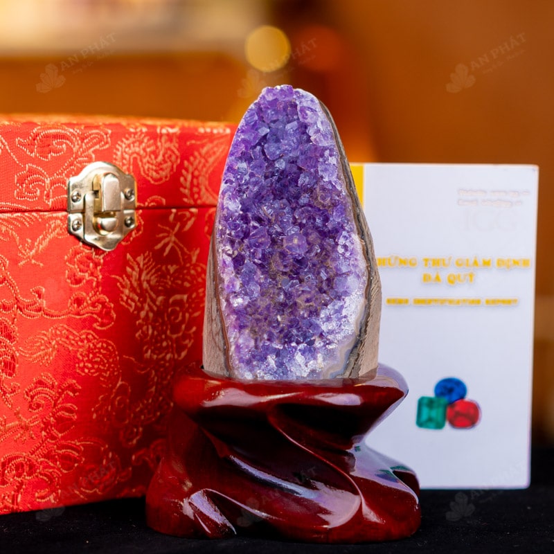 - Trọn bộ sản phẩm bao gồm: hốc thạch anh + 01 đế gỗ + hộp đựng sang trọng + túi giấy sang trọng + dầu dưỡng đá + thiệp + giấy kiểm định chất lượng đá
