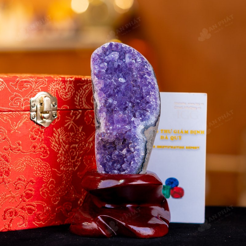 - Trọn bộ sản phẩm bao gồm: hốc thạch anh + 01 đế gỗ + hộp đựng sang trọng + túi giấy sang trọng + dầu dưỡng đá + thiệp + giấy kiểm định chất lượng đá
