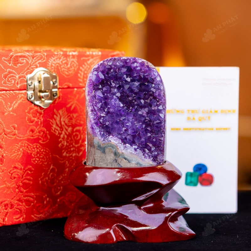 - Trọn bộ sản phẩm bao gồm: hốc thạch anh + 01 đế gỗ + hộp đựng sang trọng + túi giấy sang trọng + dầu dưỡng đá + thiệp + giấy kiểm định chất lượng đá