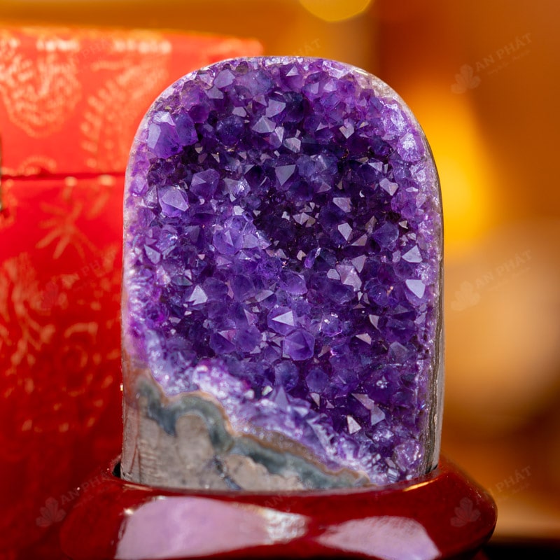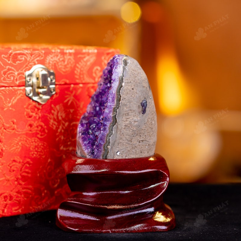Ảnh cận cảnh Hốc Thạch Anh Tím Mài Vỏ