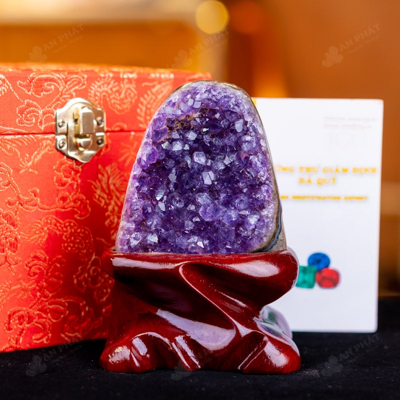 - Trọn bộ sản phẩm bao gồm: hốc thạch anh + 01 đế gỗ + hộp đựng sang trọng + túi giấy sang trọng + dầu dưỡng đá + thiệp + giấy kiểm định chất lượng đá