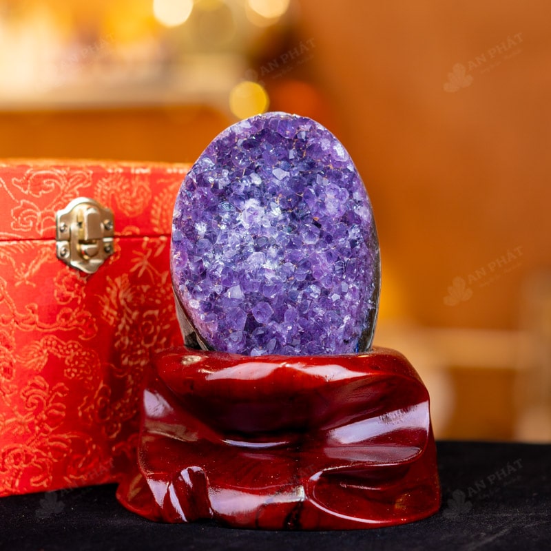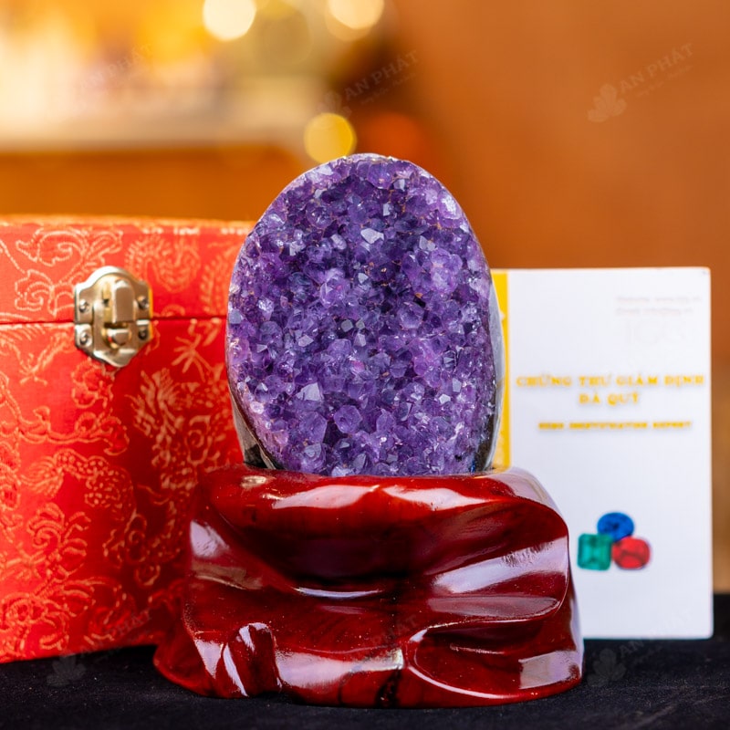 - Trọn bộ sản phẩm bao gồm: hốc thạch anh + 01 đế gỗ + hộp đựng sang trọng + túi giấy sang trọng + dầu dưỡng đá + thiệp + giấy kiểm định chất lượng đá