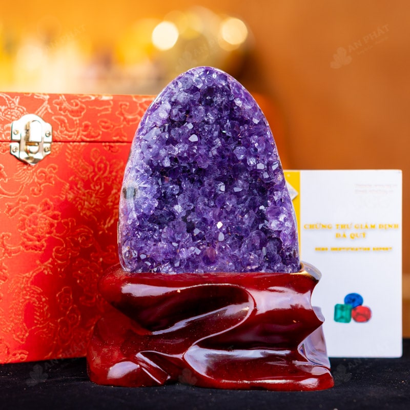 - Trọn bộ sản phẩm bao gồm: hốc thạch anh + 01 đế gỗ + hộp đựng sang trọng + túi giấy sang trọng + dầu dưỡng đá + thiệp + giấy kiểm định chất lượng đá