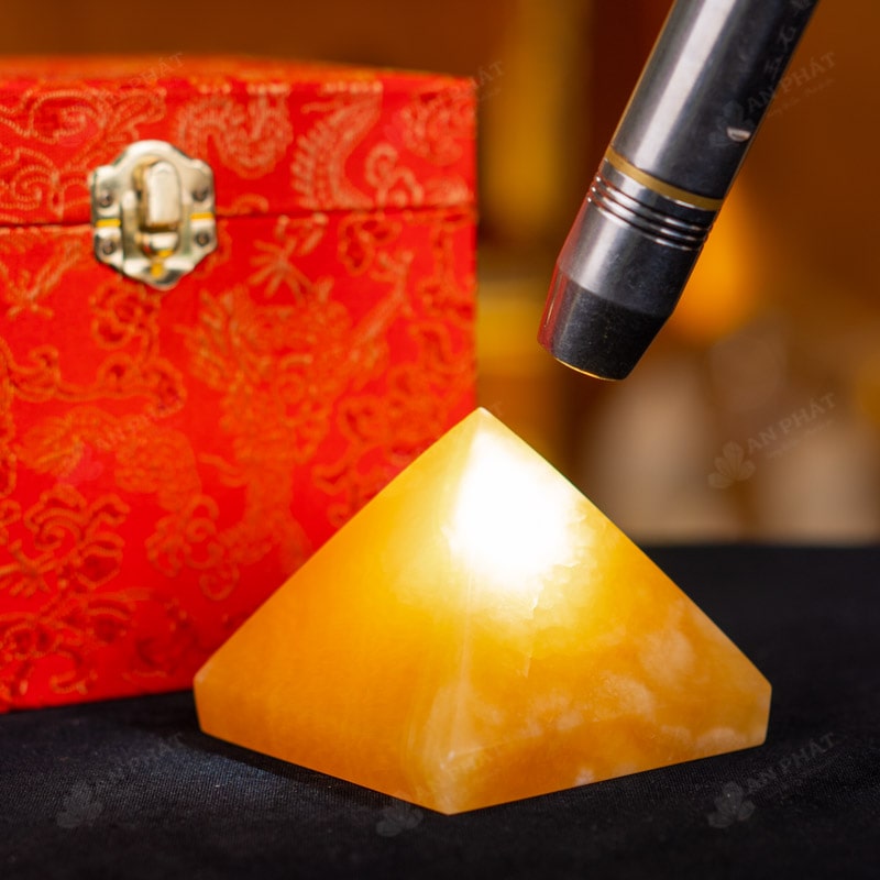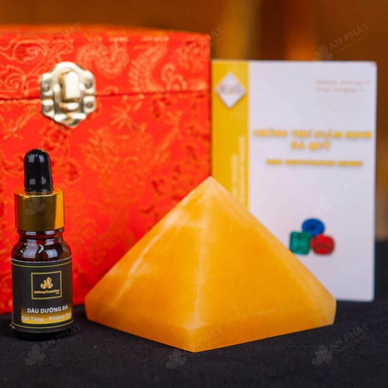 - Trọn bộ sản phẩm bao gồm: Kim tự tháp + hộp nhung sang trọng + túi giấy trang trọng + dầu dưỡng đá + thiệp + giấy kiểm định chất lượng đá