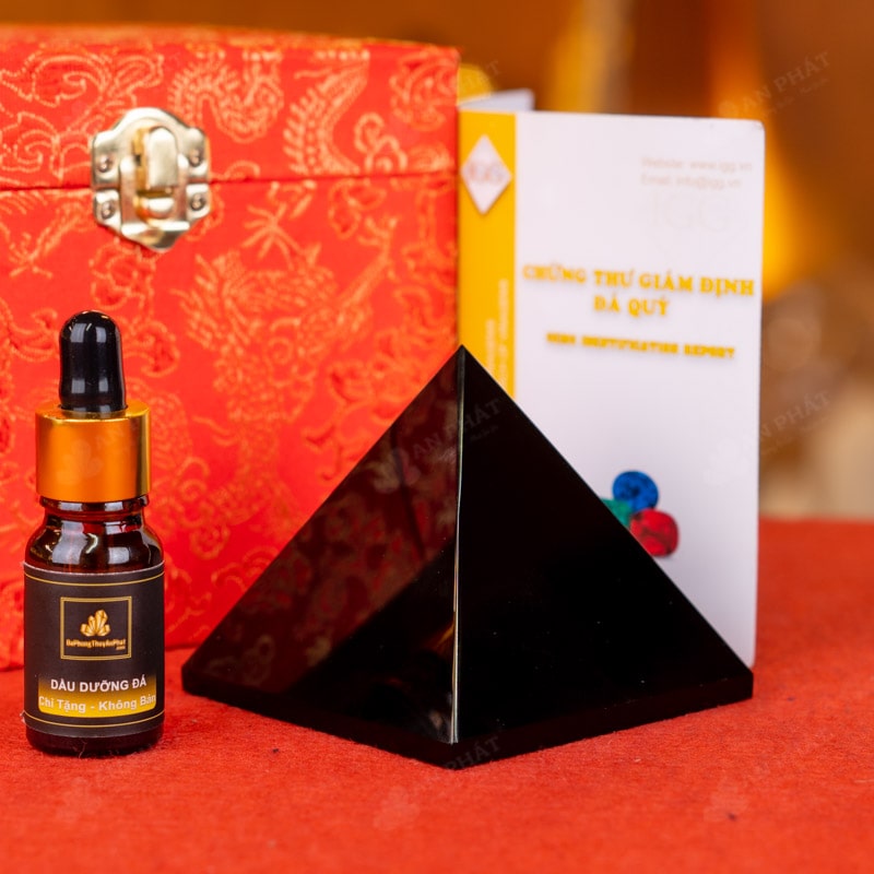 - Trọn bộ sản phẩm bao gồm: Kim tự tháp + hộp nhung sang trọng + túi giấy trang trọng + dầu dưỡng đá + thiệp + giấy kiểm định chất lượng đá