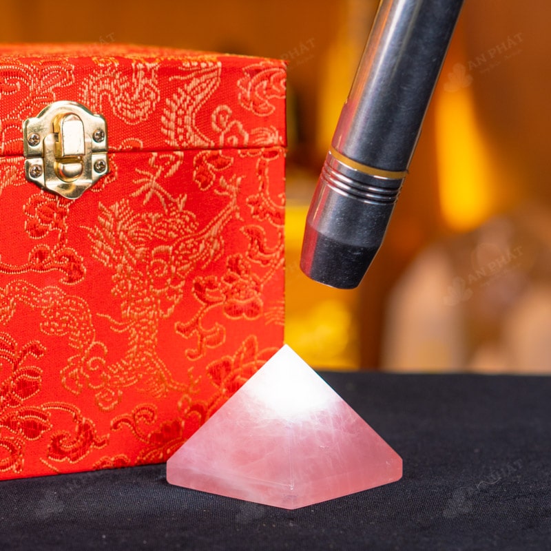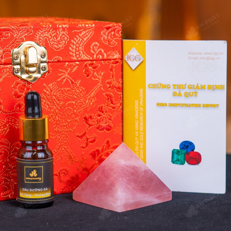 - Trọn bộ sản phẩm bao gồm: Kim tự tháp + hộp nhung sang trọng + túi giấy trang trọng + dầu dưỡng đá + thiệp + giấy kiểm định chất lượng đá