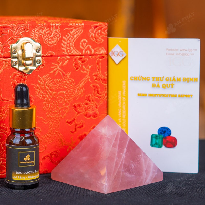 - Trọn bộ sản phẩm bao gồm: Kim tự tháp + hộp nhung sang trọng + túi giấy trang trọng + dầu dưỡng đá + thiệp + giấy kiểm định chất lượng đá