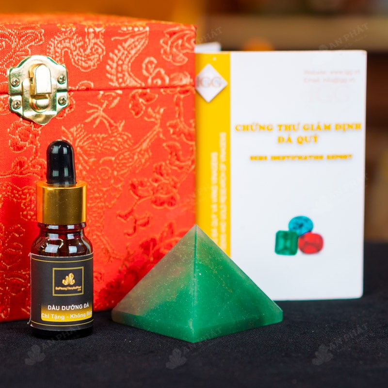 - Trọn bộ sản phẩm bao gồm: Kim tự tháp + hộp nhung sang trọng + túi giấy trang trọng + dầu dưỡng đá + thiệp + giấy kiểm định chất lượng đá