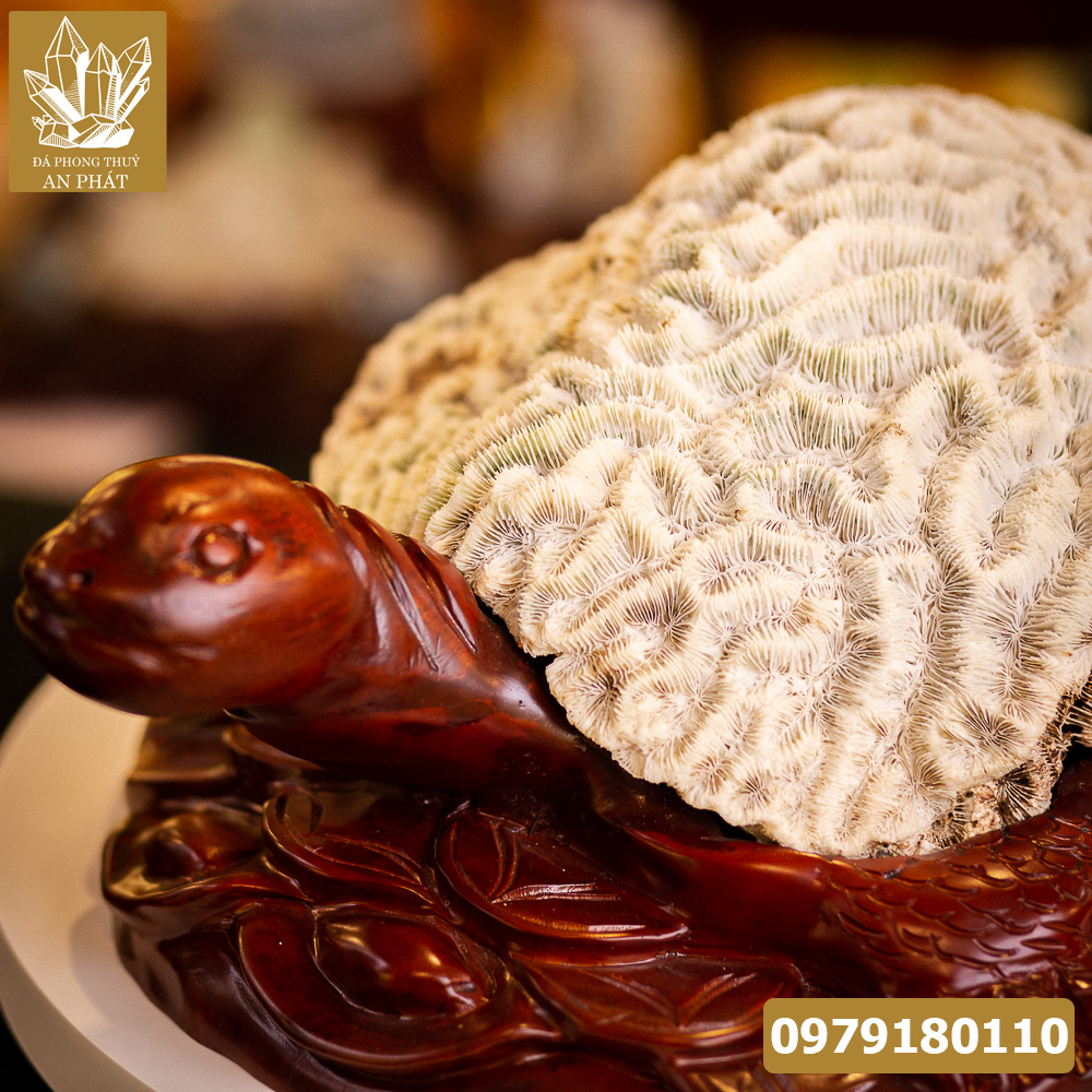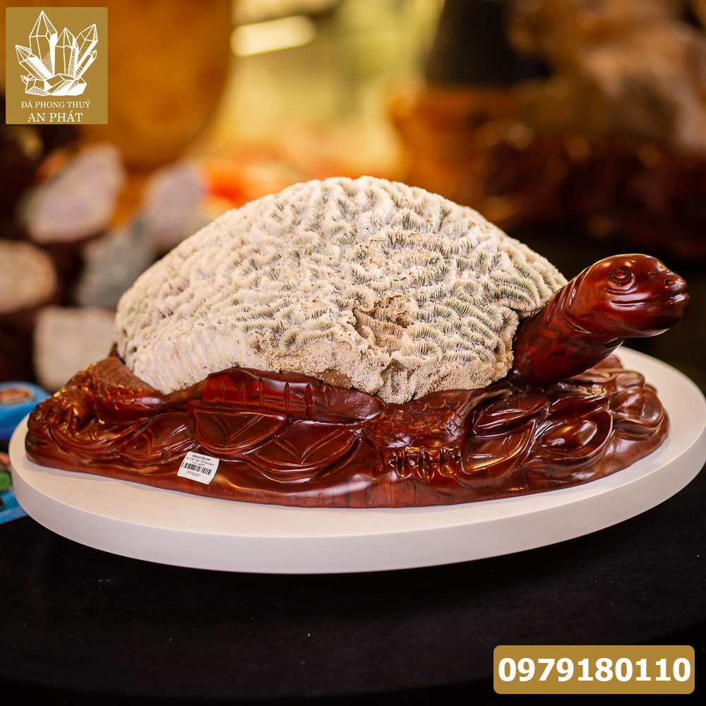 Mẫu rùa san hô sử dụng san hô hóa thạch kết hợp với gỗ hương đỏ vô cùng độc đáo sáng tạo chỉ có tại An Phát. Từ phần thân rùa cho đến đầu rùa đều được chạm khắc vô cùng tỉ mỉ, công phu và cầu kì.