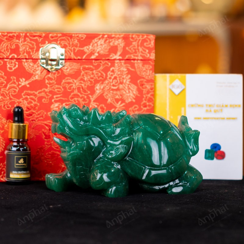 - Trọn bộ sản phẩm bao gồm: Long quy + hộp đựng sang trọng + túi giấy sang trọng + dầu dưỡng đá + thiệp + giấy kiểm định chất lượng đá