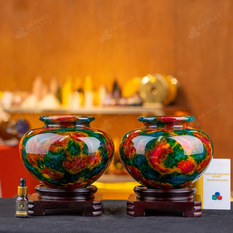 - Trọn bộ sản phẩm bao gồm: Cặp lục bình + đế gỗ + dầu dưỡng đá + thiệp + giấy kiểm định chất lượng đá