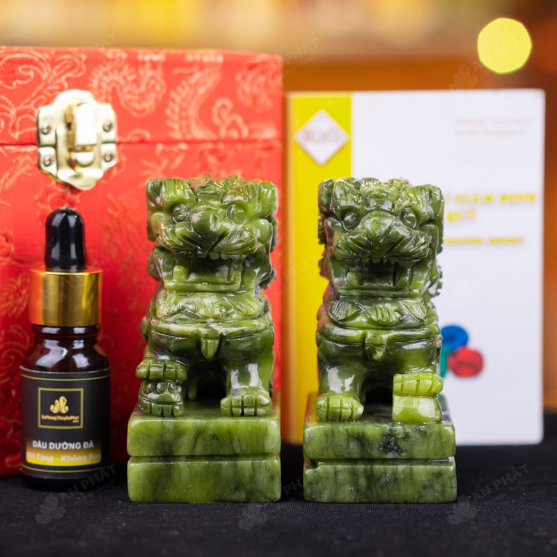 - Trọn bộ sản phẩm bao gồm: Nghê đá + hộp đựng sang trọng + túi giấy sang trọng + dầu dưỡng đá + thiệp + giấy kiểm định chất lượng đá
