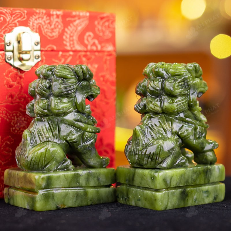 Ảnh cận cảnh cặp Nghê đá serpentine
