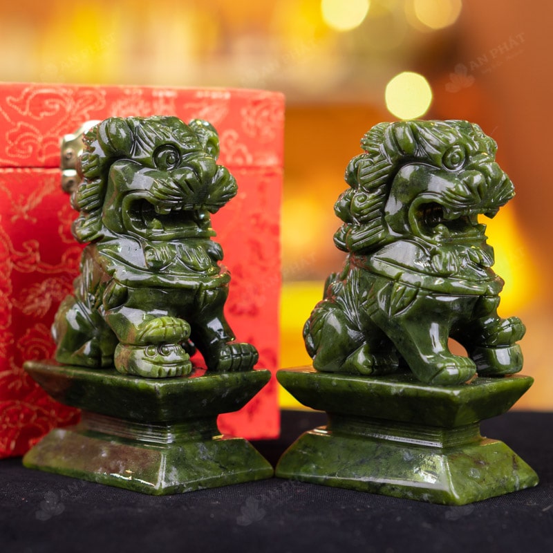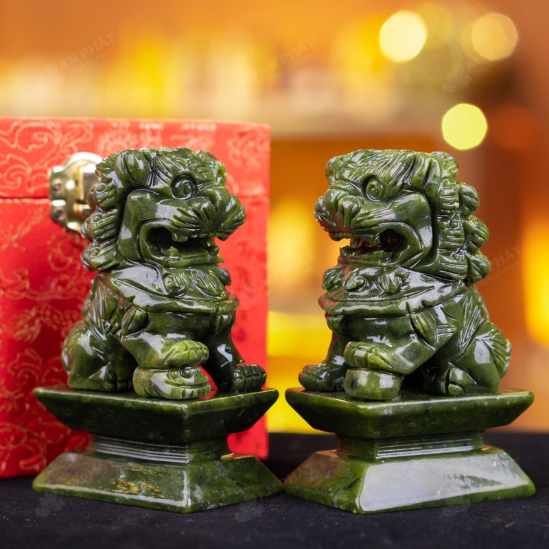Ảnh cận cảnh cặp Nghê đá serpentine