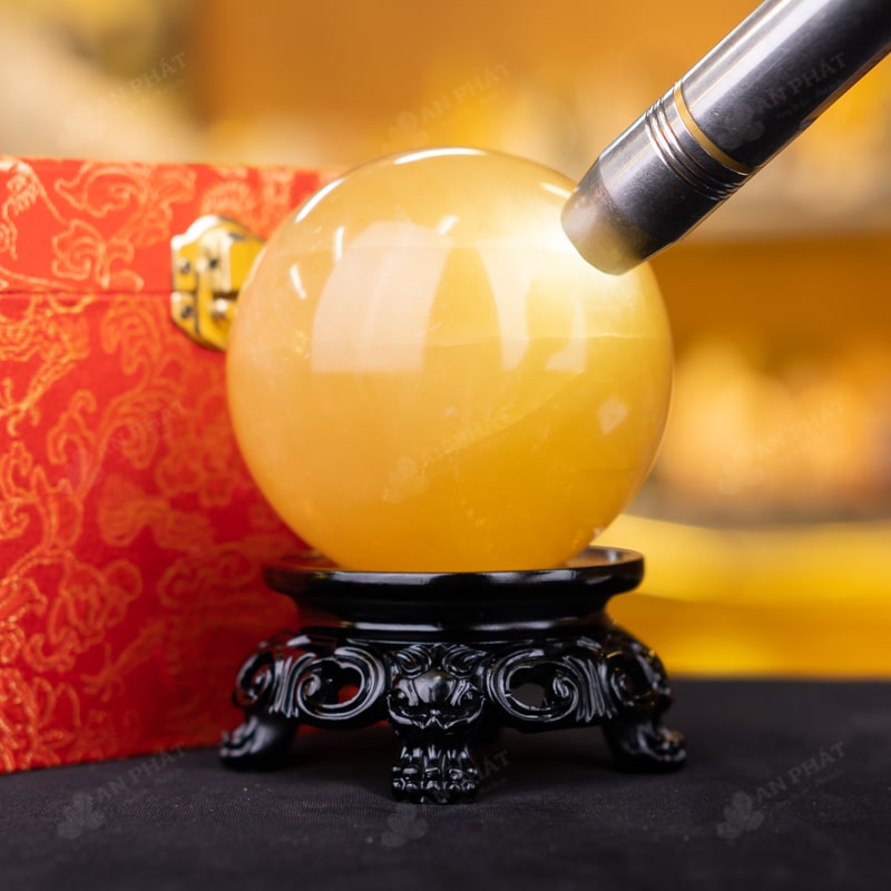 Ảnh cận cảnh quả cầu đá Canxit Vàng