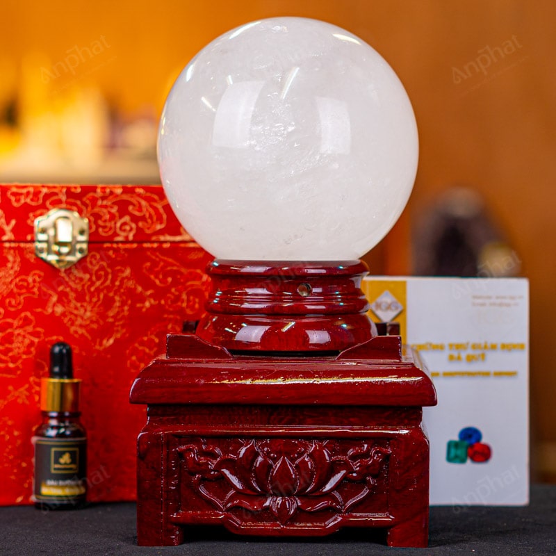 - Trọn bộ sản phẩm bao gồm: quả cầu + 01 đế gỗ + hộp đựng sang trọng + túi giấy sang trọng + dầu dưỡng đá + thiệp + giấy kiểm định chất lượng đá