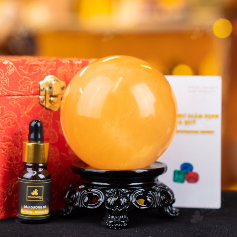 - Trọn bộ sản phẩm bao gồm: quả cầu + 01 đế gỗ + hộp đựng sang trọng + túi giấy sang trọng + dầu dưỡng đá + thiệp + giấy kiểm định chất lượng đá