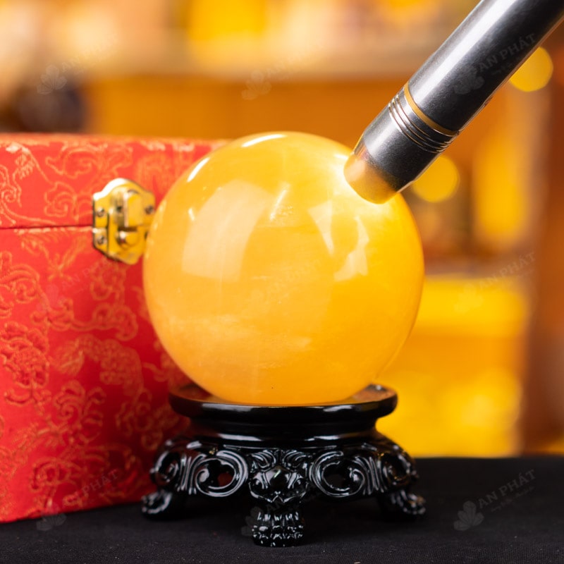 Ảnh cận cảnh quả cầu đá canxit vàng