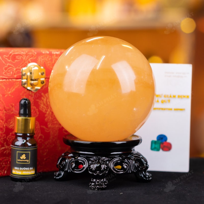 - Trọn bộ sản phẩm bao gồm: quả cầu + 01 đế gỗ + hộp đựng sang trọng + túi giấy sang trọng + dầu dưỡng đá + thiệp + giấy kiểm định chất lượng đá