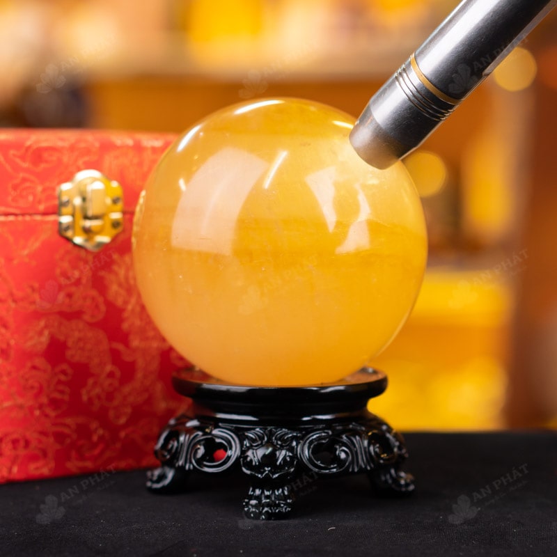 Ảnh cận cảnh quả cầu đá Canxit vàng