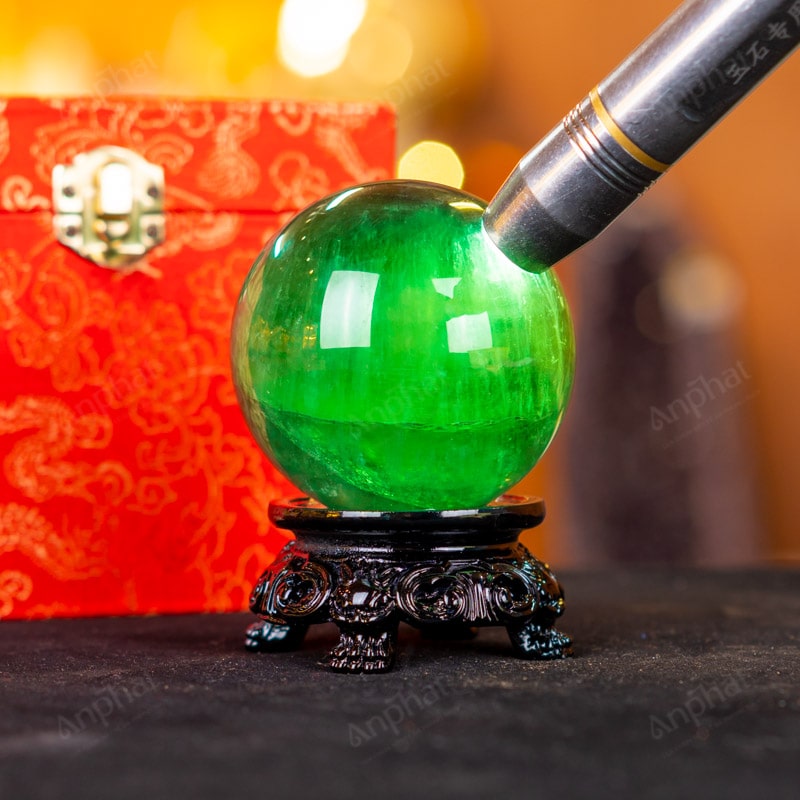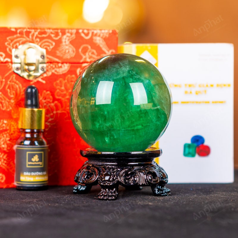 - Trọn bộ sản phẩm bao gồm: quả cầu + 01 đế gỗ + hộp đựng sang trọng + túi đựng sang trọng + dầu dưỡng đá + thiệp + giấy kiểm định chất lượng đá