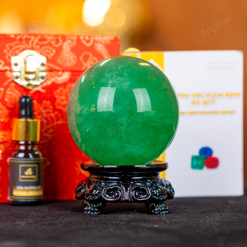 - Trọn bộ sản phẩm bao gồm: quả cầu + 01 đế gỗ + hộp đựng sang trọng + túi đựng sang trọng + dầu dưỡng đá + thiệp + giấy kiểm định chất lượng đá