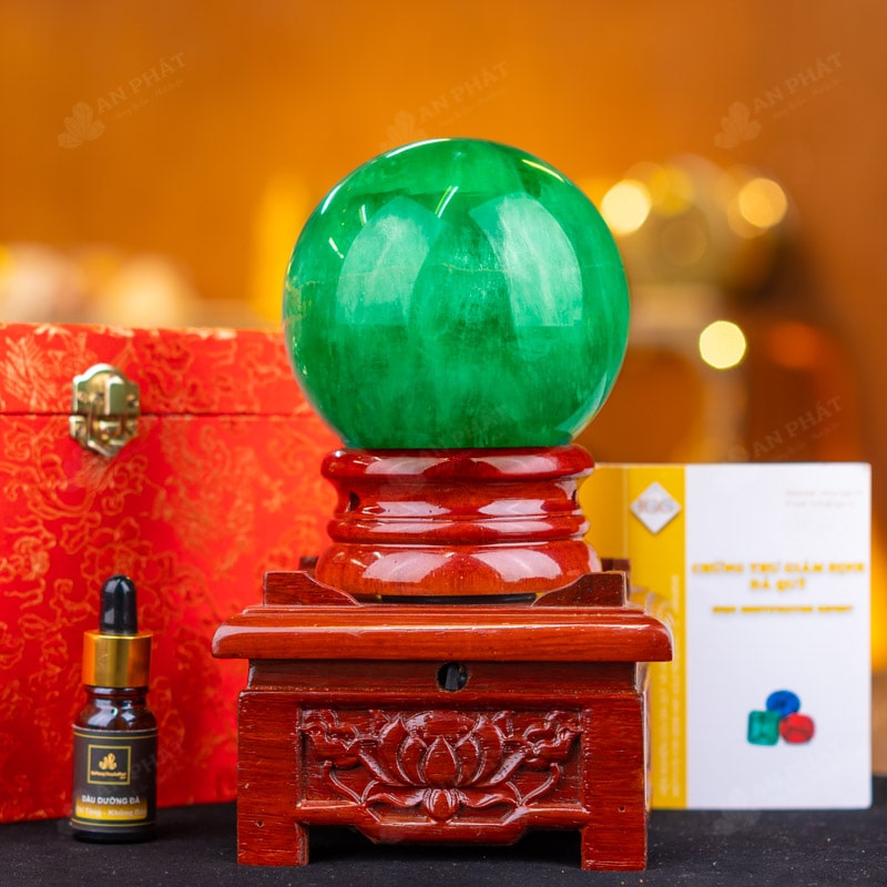 - Trọn bộ sản phẩm bao gồm: quả cầu + 01 đế gỗ + hộp đựng sang trọng + túi đựng sang trọng + dầu dưỡng đá + thiệp + giấy kiểm định chất lượng đá