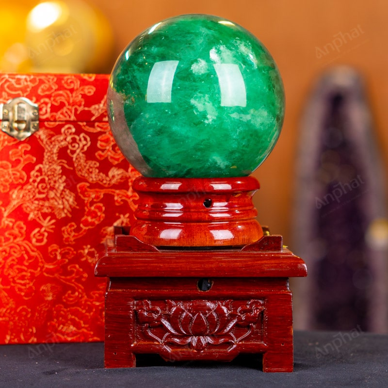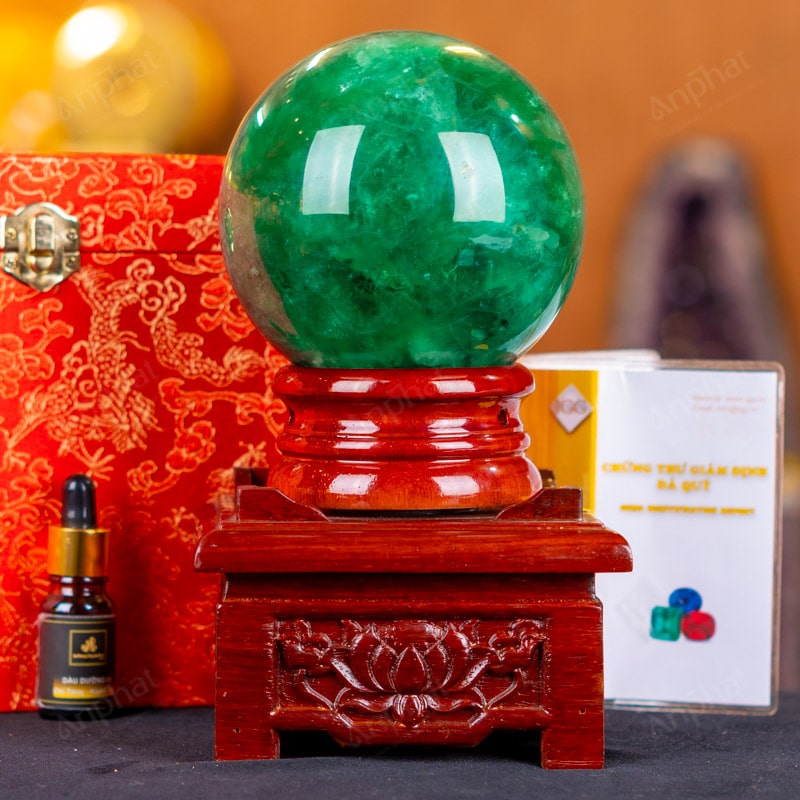 - Trọn bộ sản phẩm bao gồm: quả cầu + 01 đế gỗ + hộp đựng sang trọng + túi đựng sang trọng + dầu dưỡng đá + thiệp + giấy kiểm định chất lượng đá