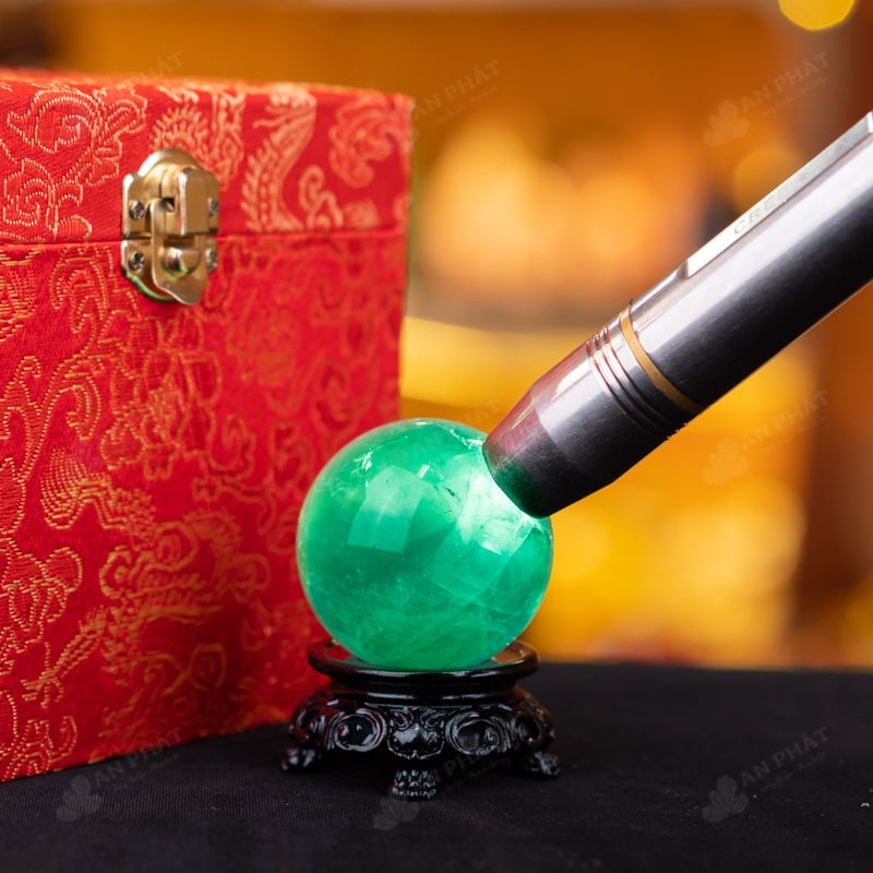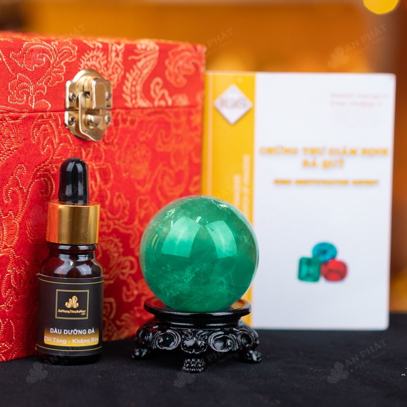 - Trọn bộ sản phẩm bao gồm: quả cầu + 01 đế gỗ + hộp đựng sang trọng + túi đựng sang trọng + dầu dưỡng đá + thiệp + giấy kiểm định chất lượng đá