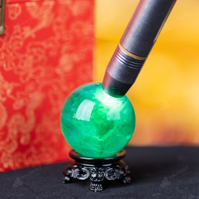 - Trọn bộ sản phẩm bao gồm: quả cầu + 01 đế gỗ + hộp đựng sang trọng + túi đựng sang trọng + dầu dưỡng đá + giấy kiểm định chất lượng đá