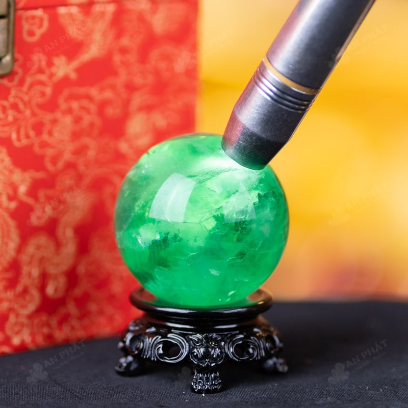 - Trọn bộ sản phẩm bao gồm: quả cầu + 01 đế gỗ + hộp đựng sang trọng + túi đựng sang trọng + dầu dưỡng đá + giấy kiểm định chất lượng đá