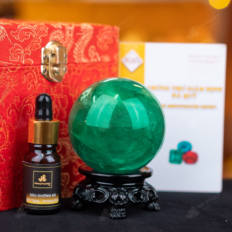 - Trọn bộ sản phẩm bao gồm: quả cầu + 01 đế gỗ + hộp đựng sang trọng + túi đựng sang trọng + dầu dưỡng đá + thiệp + giấy kiểm định chất lượng đá
