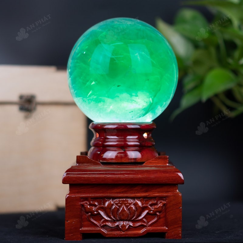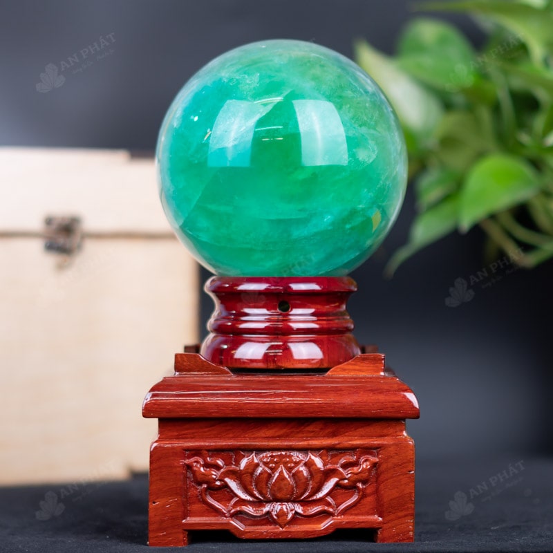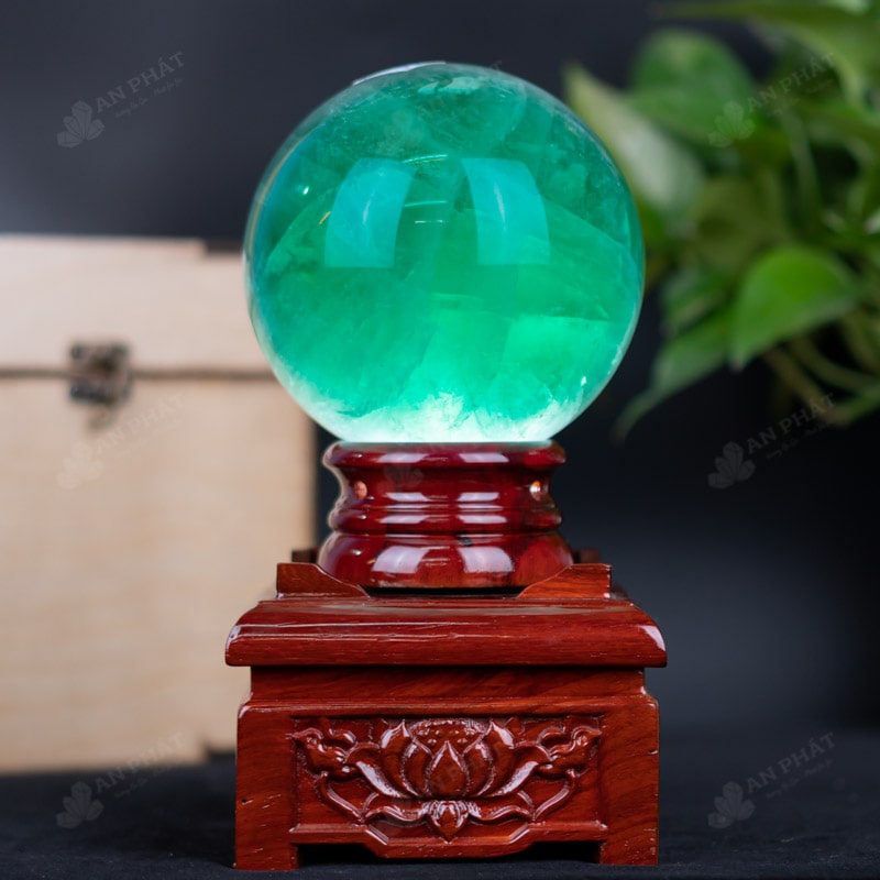 Ảnh cận cảnh quả cầu đá Fluotite xanh