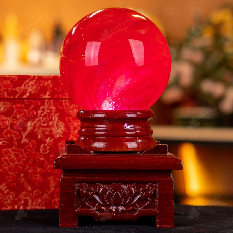 Ảnh cận cảnh quả cầu đá thạch anh đỏ