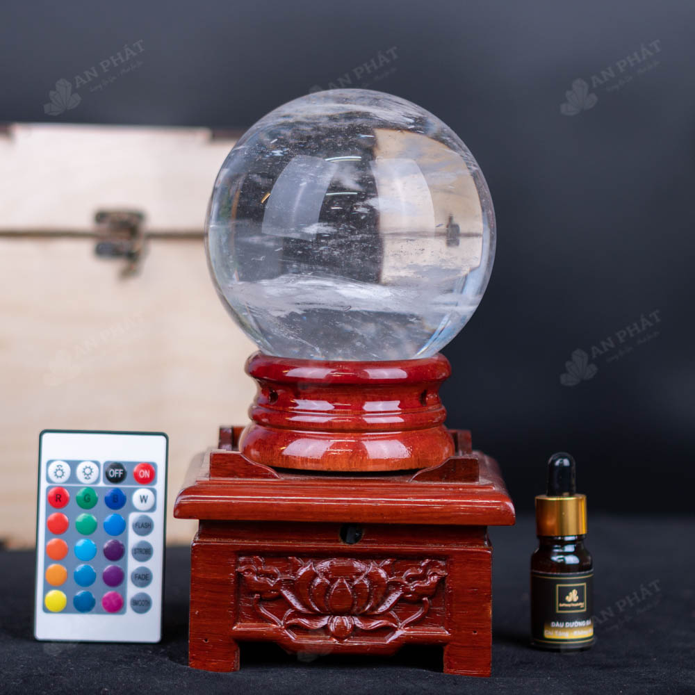 - Trọn bộ sản phẩm bao gồm: quả cầu + đế gỗ + đèn 7 màu + hộp đựng sang trọng + túi giấy sang trọng + dầu dưỡng đá