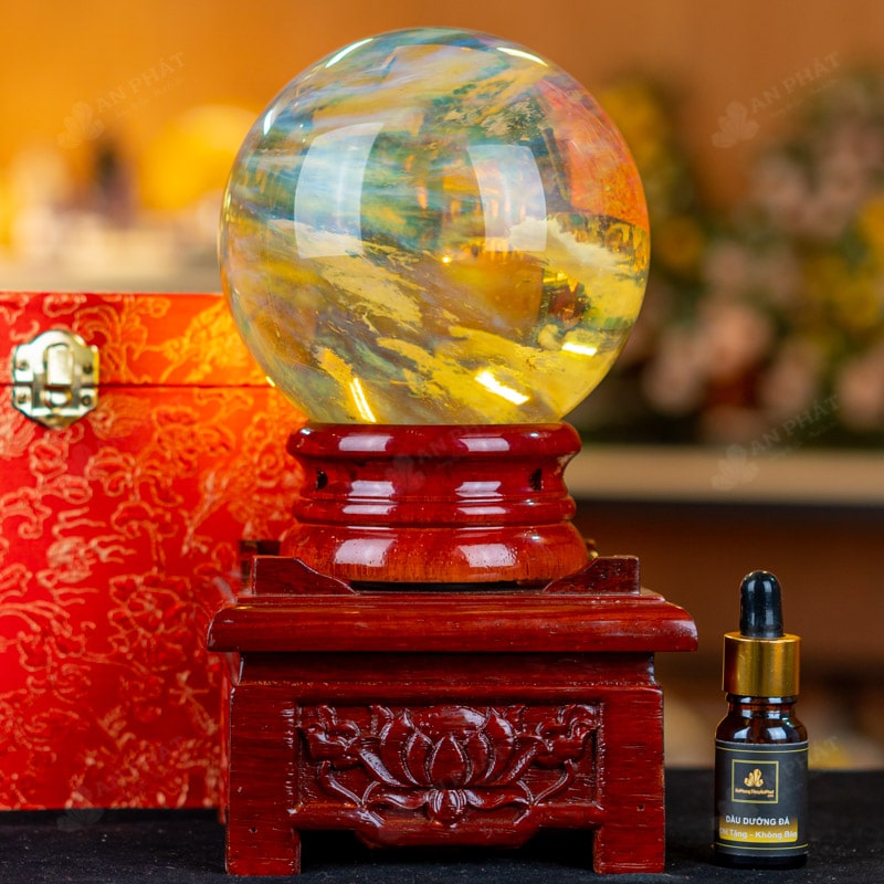 - Trọn bộ sản phẩm bao gồm: quả cầu + 01 đế gỗ + hộp nhung sang trọng + túi giấy sang trọng + dầu dưỡng đá + thiệp tặng quà