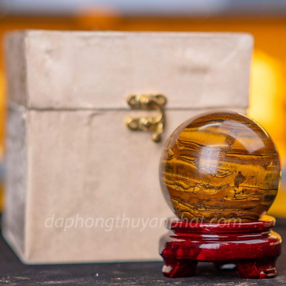 Qủa cầu đá phong thủy mắt hổ là một vật phẩm phong thủy được sử dụng để trang trí và có tác dụng chiêu tài trấn tà. Đem đến sự thuận lơi, những may mắn về sức khỏe cũng như công việc, sự nghiệp công danh ngày một phát triển và có được những thăng tiến vược bậc.