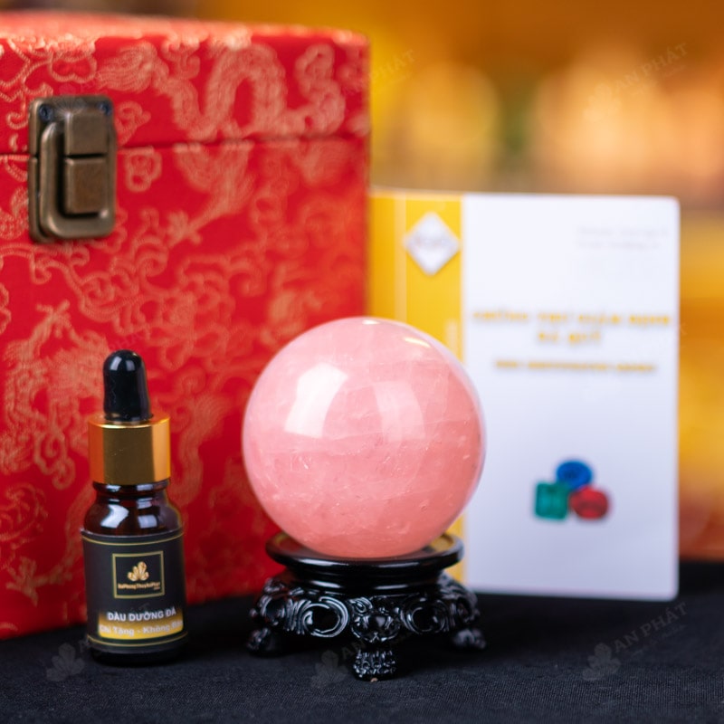 - Trọn bộ sản phẩm bao gồm: quả cầu + 01 đế gỗ + hộp đựng sang trọng + túi giấy sang trọng + dầu dưỡng đá + giấy kiểm định chất lượng đá