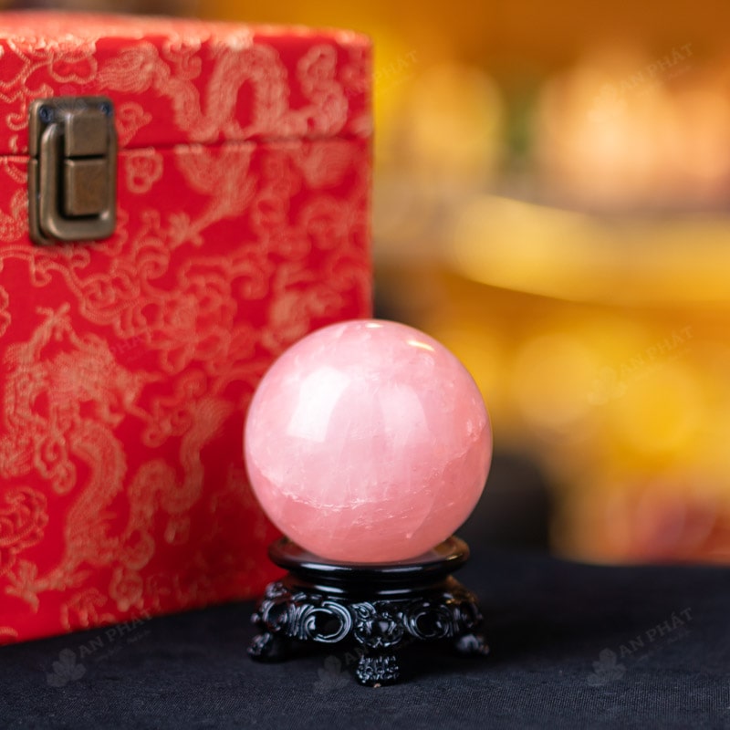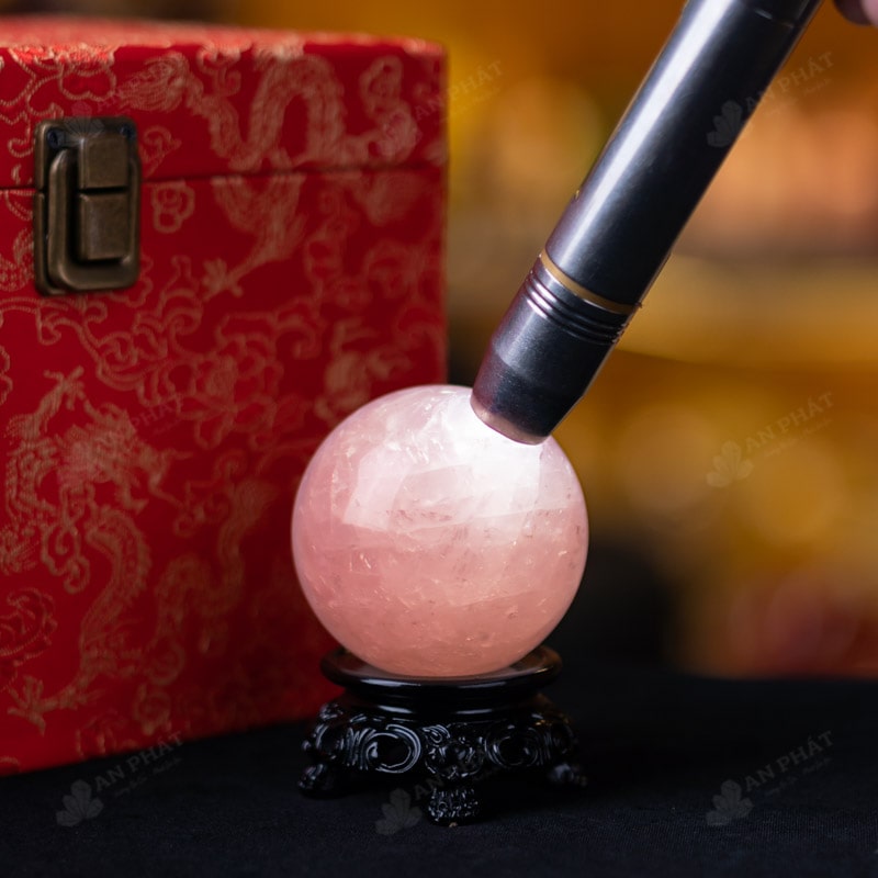 Ảnh cận cảnh quả cầu đá thạch anh hồng