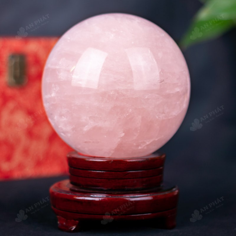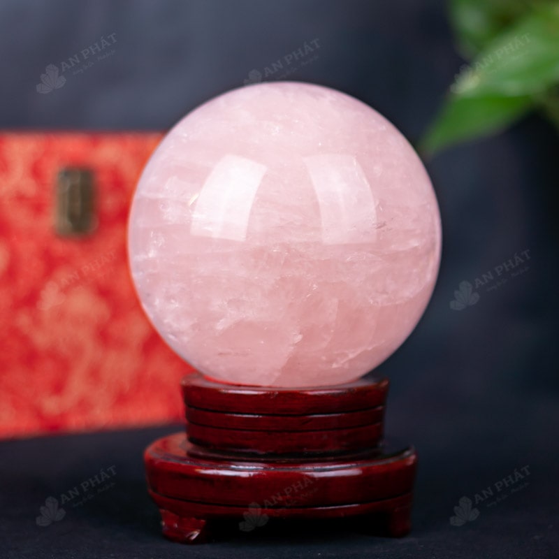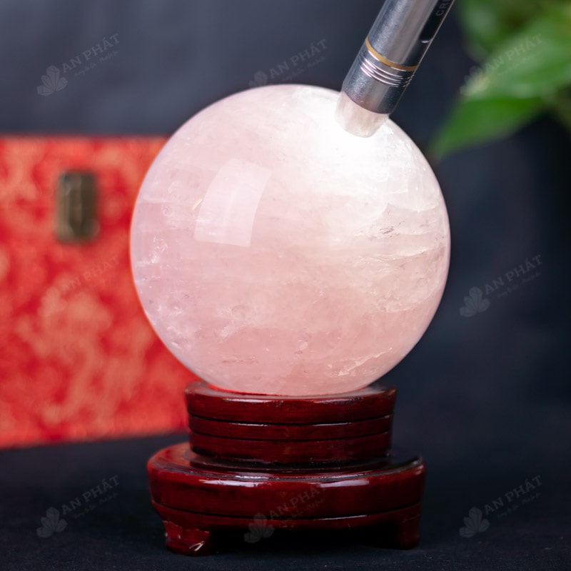 Ảnh cận cảnh quả cầu đá thạch anh hồng