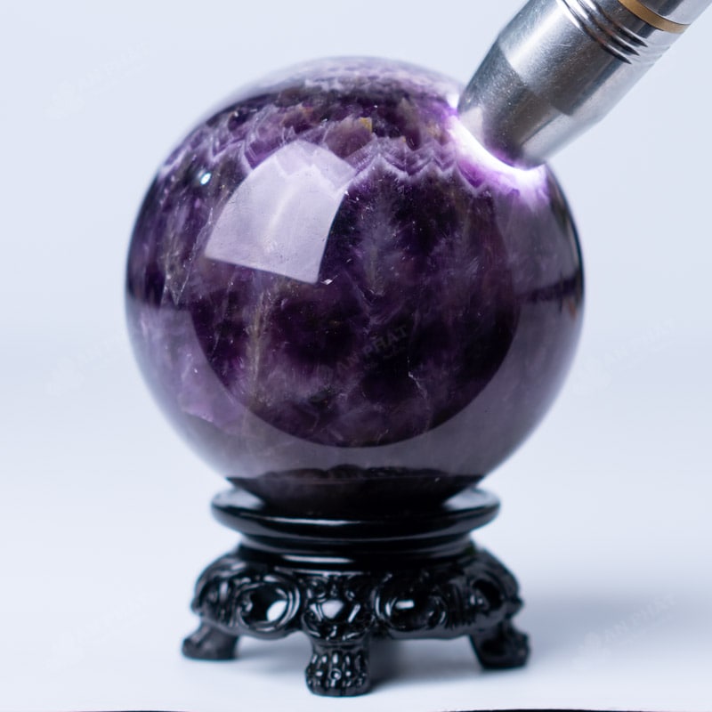 Ảnh cận cảnh quả cầu đá thạch anh tím hoa chanh