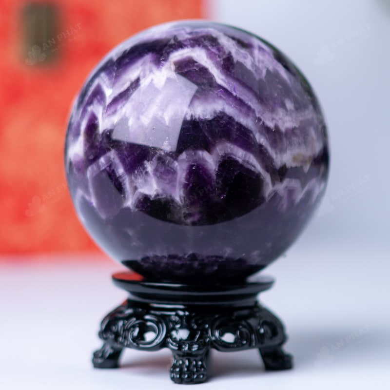 Ảnh cận cảnh quả cầu đá thạch anh tím hoa chanh