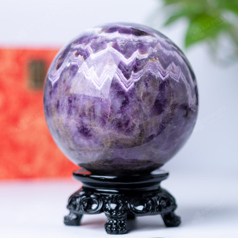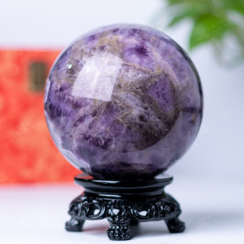 Ảnh cận cảnh quả cầu đá thạch anh tím hoa chanh
