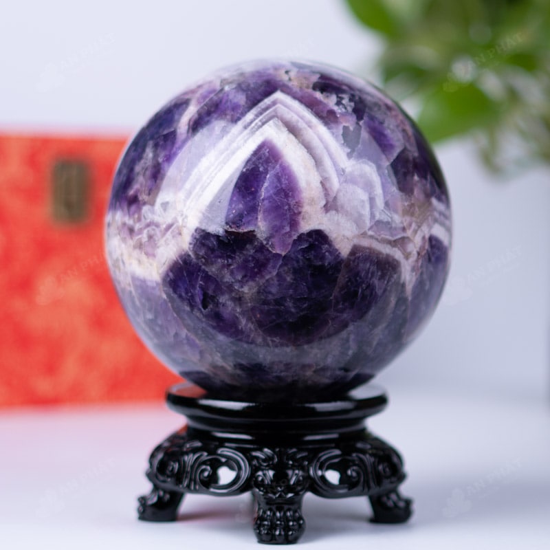 Ảnh cận cảnh quả cầu đá thạch anh tím hoa chanh