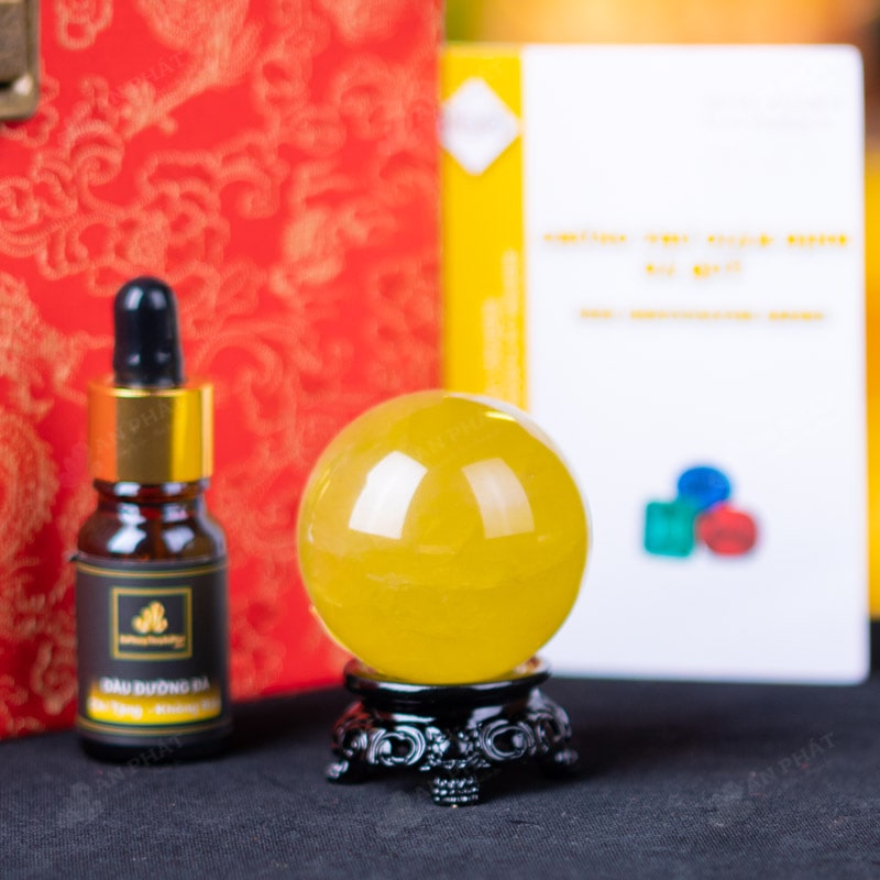 - Trọn bộ sản phẩm bao gồm: quả cầu + 01 đế gỗ + hộp đựng sang trọng + túi giấy sang trọng + dầu dưỡng đá + giấy kiểm định chất lượng đá